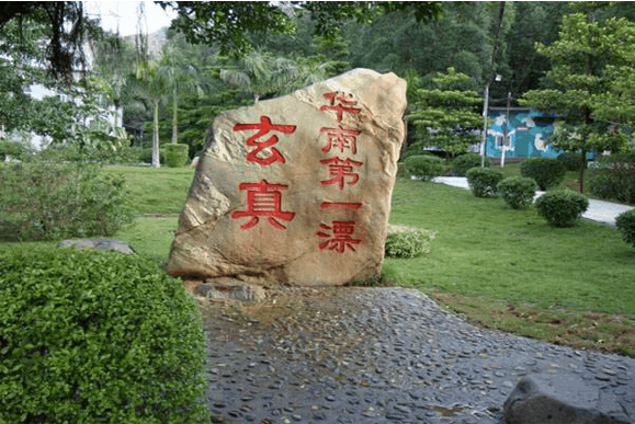 差不多接近四個小時左右我們到達的清遠市清新縣,下了車,來到了一家清新縣的飯店吃午餐,盡管味道不是太適合我們的口味,但也體驗了清遠人別樣的風(fēng)味,加上大家已經(jīng)坐了好久的車,已經(jīng)有點餓了,因此大家還是吃得很暢酣。茶余飯后,大概休息了10分鐘之后。導(dǎo)游說,開始上車了,帶我們?nèi)バ嫫鳎f到這個,我們的心情立馬激動起來,顧不得滿嘴還是油也沒檫干凈,就都飛奔去上車了。過了大概20分鐘,終于抵達清遠玄真漂流的起點——玄真漂流站。眼前的那一塊書寫著“玄真 華南第一漂”的石頭最為顯眼。